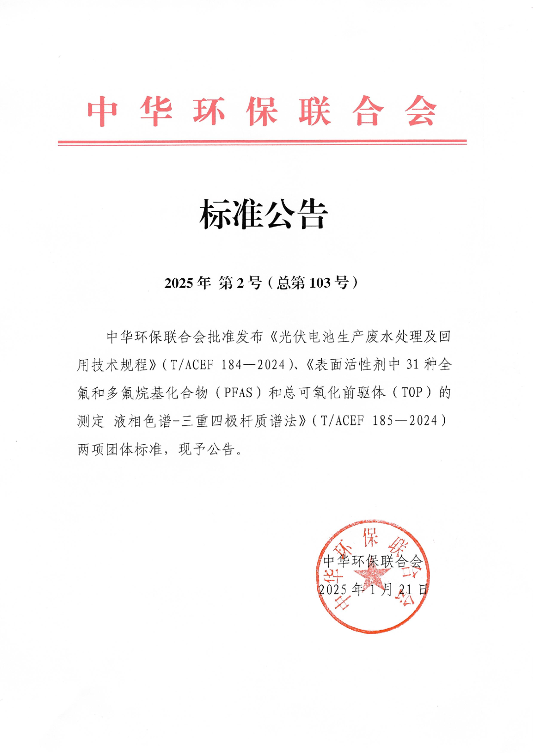 光伏電池生產廢水處理及回用技術規程》(T/ACEF 184-2025)