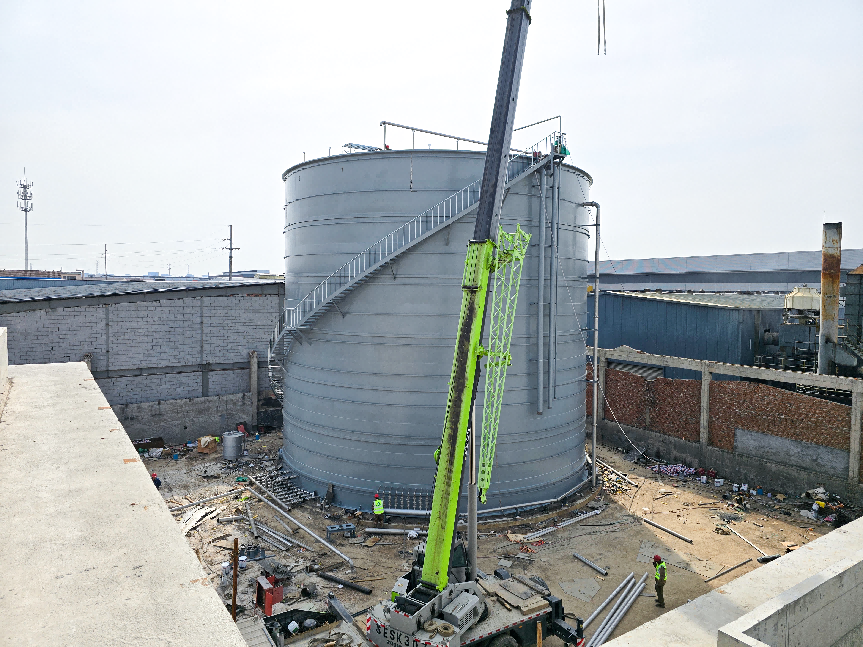 我司于2025年2月13日進駐現場開展施工工作,截至2025年3月31日,我司已順利完成了厭氧罐體的安裝作業,進入到厭氧罐工藝的安裝階段,并同步開展集中式污水處理廠的施工工作。
