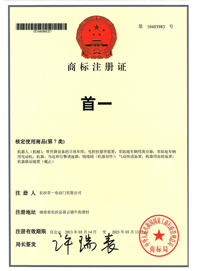 長沙首一電動門有限公司(營業執照代碼:9143010357027453X4)